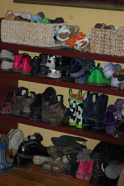 now for YOUR challenge...can you guess how many shoes are on this shelf???